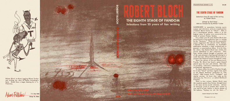 The Eighth Stage of Fandom is a collection of Robert Bloch's writing for fanzines, the personal and amateur magazines published by fantasy and sf fans (and soon after by others, including mystery and suspense fans, comics aficionados, rock music people and most enthusiastically punk rockers, and by the 1990s, basically anyone who felt like producing a 'zine; blogs and other social media scratch this creative/communicative itch for many these years); the fantastic-fiction fanzines grew out of the newsletters of early fan clubs, and some influential early fans, notable among them H. P. Lovecraft, being enthusiastic participants in amateur press associations (APAs), originally devoted to people who loved the actual production, the layout and typesetting, of newsletters, back in the heroic days of page makeup through lead slugs in heavy trays. Fandoms took on the APA model of trading their magazines with each other as well as making their fanzines available to non-publishers/traders.