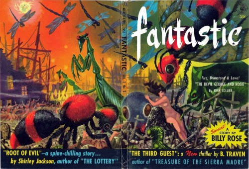 In 1945, the old college friends, and associates of Fredric Dannay (Boucher had already sold his translation of Jorge Luis Borges's "The Garden of the Forking Paths" to Ellery Queen's Mystery Magazine, the first publication of Borges in English), began to inquire if Dannay might lend his EQ "name" to a fantasy and horror fiction magazine in the same mode as EQMM; Dannay begged off, but suggested that the men directly contact his publisher, Lawrence Spivak, at Mercury Press, and Dannay would certainly put in a good word for them. Spivak and his publications manager Joseph Ferman were interested, but cautious...Mercury Press was doing OK with American Mercury, the H. L. Mencken-founded magazine of politics and culture, in part because of the association with the NBC radio series Meet the Press Spivak was now producing, though not yet hosting, and better with EQMM, and the Mercury Mystery and Bestseller Mystery lines of books were getting by, published in digest-sized magazine format and given essentially magazine-style distribution (even more so than the mass-market paperbacks that Pocket Books and Bantam and their direct competitors were issuing, including those such as Fawcett and Ace who previously had been magazine publishers primarily), albeit it was a crowded post-war marketplace facing uncertain economic times. Already publishing in digest format, Donald Wollheim's The Avon Fantasy Reader was Spivak and Ferman's model for how they figured their potential new magazine might do, and reports were mixed there, as well...certainly Weird Tales, which had inspired the Avon title, had been a marginal commercial property for its long run, as well...so the proposed Fantasy and Horror, then Fantasy and Terror, seemed like a bit of a gamble. We read some of the correspondence between Ferman and the prospective editors from the period between 1946 and 1949, and finally the publication of the first issue of what emerges as The Magazine of Fantasy...and with a slightly expanded title, publishes a second issue (and continues to publish today).