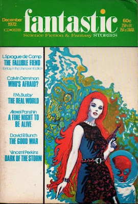 Previously on the blog I'd reviewed another similar pair of anthologies, one drawn from The Magazine of Fantasy and Science Fiction and the other from Fantastic, and it still impresses me how they demonstrated all the ways fine books can be mispublished. For example, I was at best barely aware of either book when they were released in 1985 and 1987 respectively, despite my being their ideal audience. The F&SF volume, presumably offered to mainline publishers such as Doubleday (which once had been the regular publisher of an annual, then irregular, series of best-of anthologies from the magazine), was instead published by an "instant remainder" publisher, with no ad budget and presumably no review copies sent anywhere (even given that Octopus was a more ambitious discount line than most). ISFDB in fact records no reviews for the book in the usual media of the time. And yet it's (at least) a near-brilliant and hefty selection, as the table of contents below demonstrates. Meanwhile, the somewhat more slapdash volume taken from Fantastic is (small favors) printed on heavier, less acidic paper...with one story curiously reprinted from the utterly different 1950s magazine Fantastic Universe, possibly out of some sort of filing error on the part of co-editor Martin Harry Greenberg, famous for his systematized editing process (in part through creating a vast database of stories, originally on card files). The book also shows other signs of being assembled with less than full attention, and was similarly offered to the market by its wealthy games publisher, TSR (Dungeons and Dragons, etc.), with little sense of how to connect with the fantasy- and sf-reading public. And it, too, got no reviews in the fantastic-fiction media as far as ISFDB knows. TSR spent enough on the book to include a rather haphazard selection of covers from issues of the magazine, on heavy coated stock and in full color, when that was still rather more expensive to do than it is now, but couldn't be bothered to list the contributors' names legibly anywhere on the book's cover. And while the selection of stories from the pages of the magazine is more Very Good than as great as it should be (no Fritz Leiber story?--not that the Leiber choice in the F&SF volume is ideal, either, though a sentimental favorite of the editor), there is no lack of commercially potent as well as distinguished artists among those contributors. So, at least one of the best books drawn from F&SF's inventory, even compared with a long list of other very impressive anthologies, and only the third book (and last, so far) to cover nearly three decades of Fantastic, and the first not to be offered by an impoverished publisher, were both barely made available to their natural audience...and are mostly forgotten still.