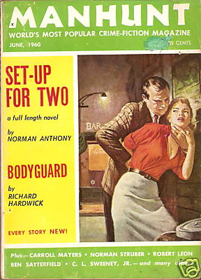 The bloom was definitely off the rose for Manhunt by 1960...it, as now a bimonthly, hadn't been the bestselling crime-fiction magazine for some years by then, though it's a claim it would leave on its increasingly cheap-looking covers for at least another several years...but still publishing some good writers and some good fiction in 1960, which would be less true by its last issues in 1967. All of its stablemates had folded by the end of the '50s, though several of its downmarket imitators muddled on...as it slid downhill to join them.